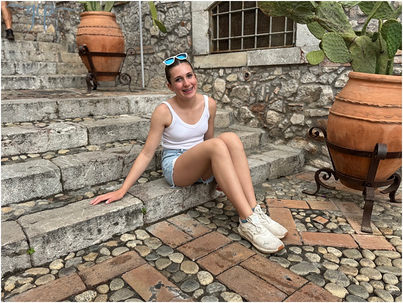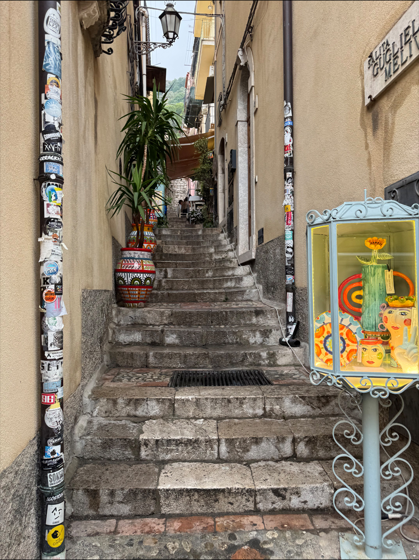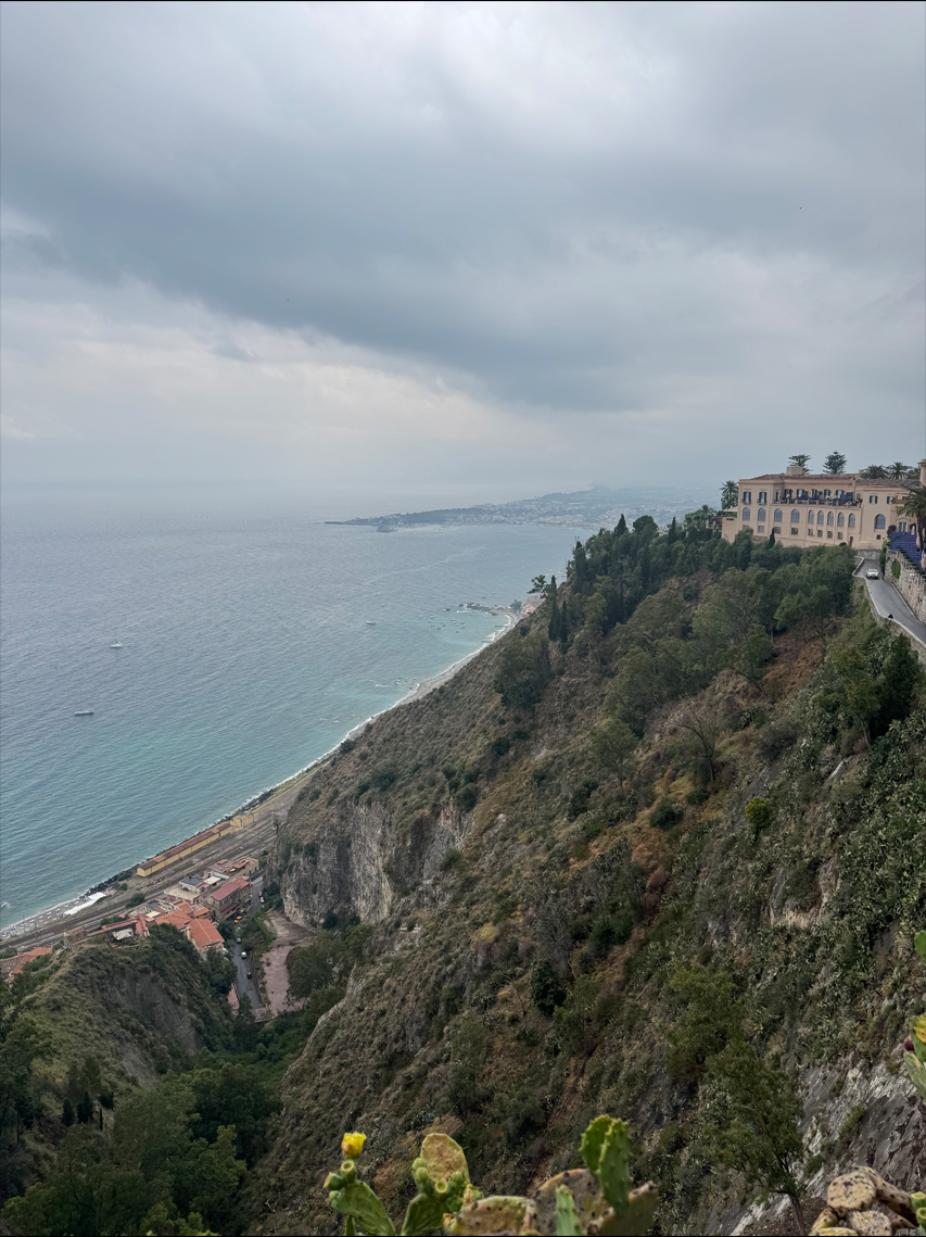 We then started heading to the little town of Taormina. It unfortunately started pouring the minute we arrived, but it was time to grab some lunch anyway so we found a cute little restaurant. Thankfully the rain had moved on by the time we finished so we could go exploring. We also made sure to find Laboratorio Pasticceria Roberto for their famous cannoli, and it did not disappoint! Our guide also mentioned that if we found granita that we had to try it. It ended up being even better than the cannoli. It is basically a version of shaved ice, but made with sugar and fresh fruit puree.